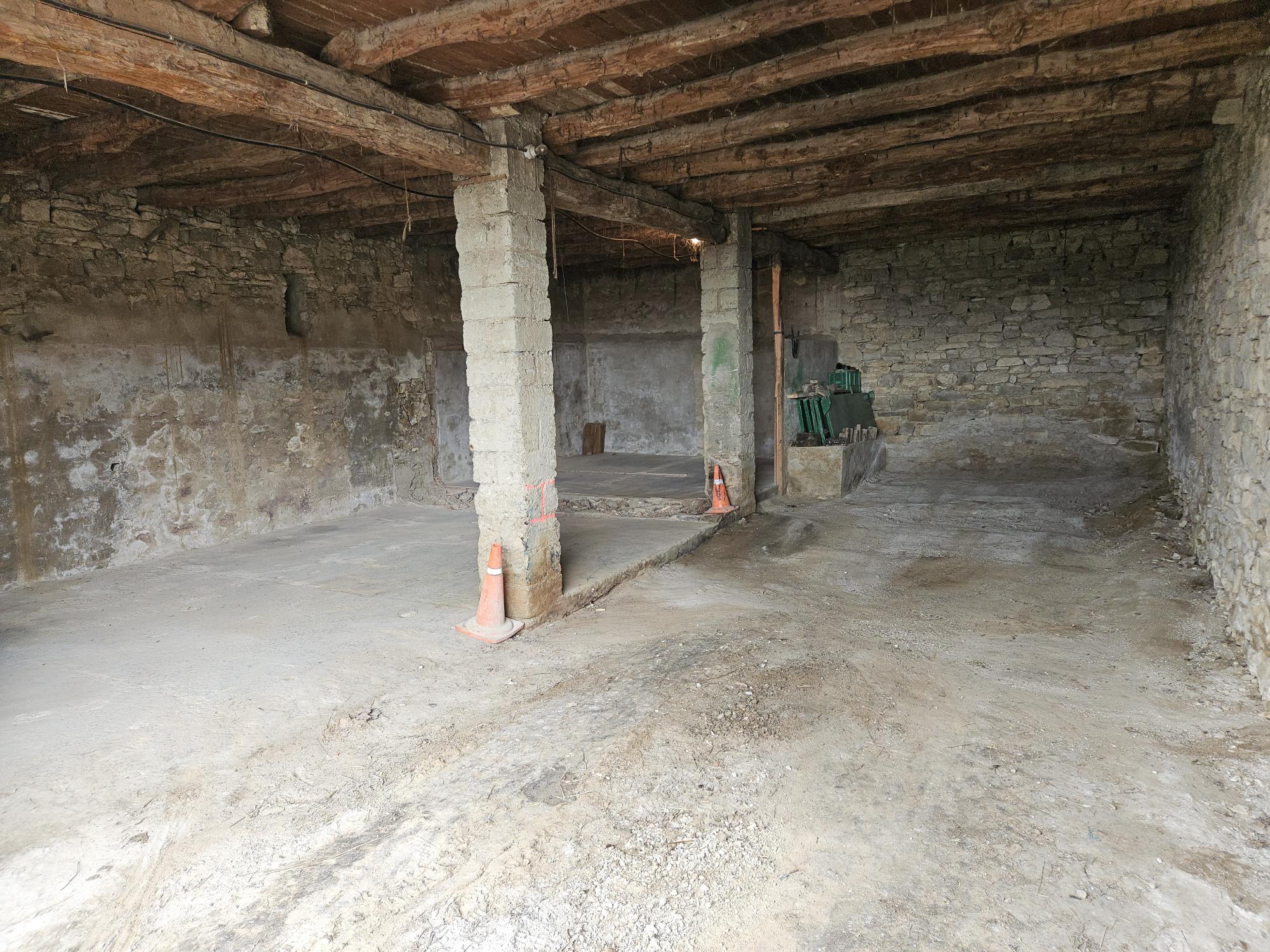 - Downstairs; it is under the ground and that is where the livestock (cows, pigs and horses to work the land) has always been.