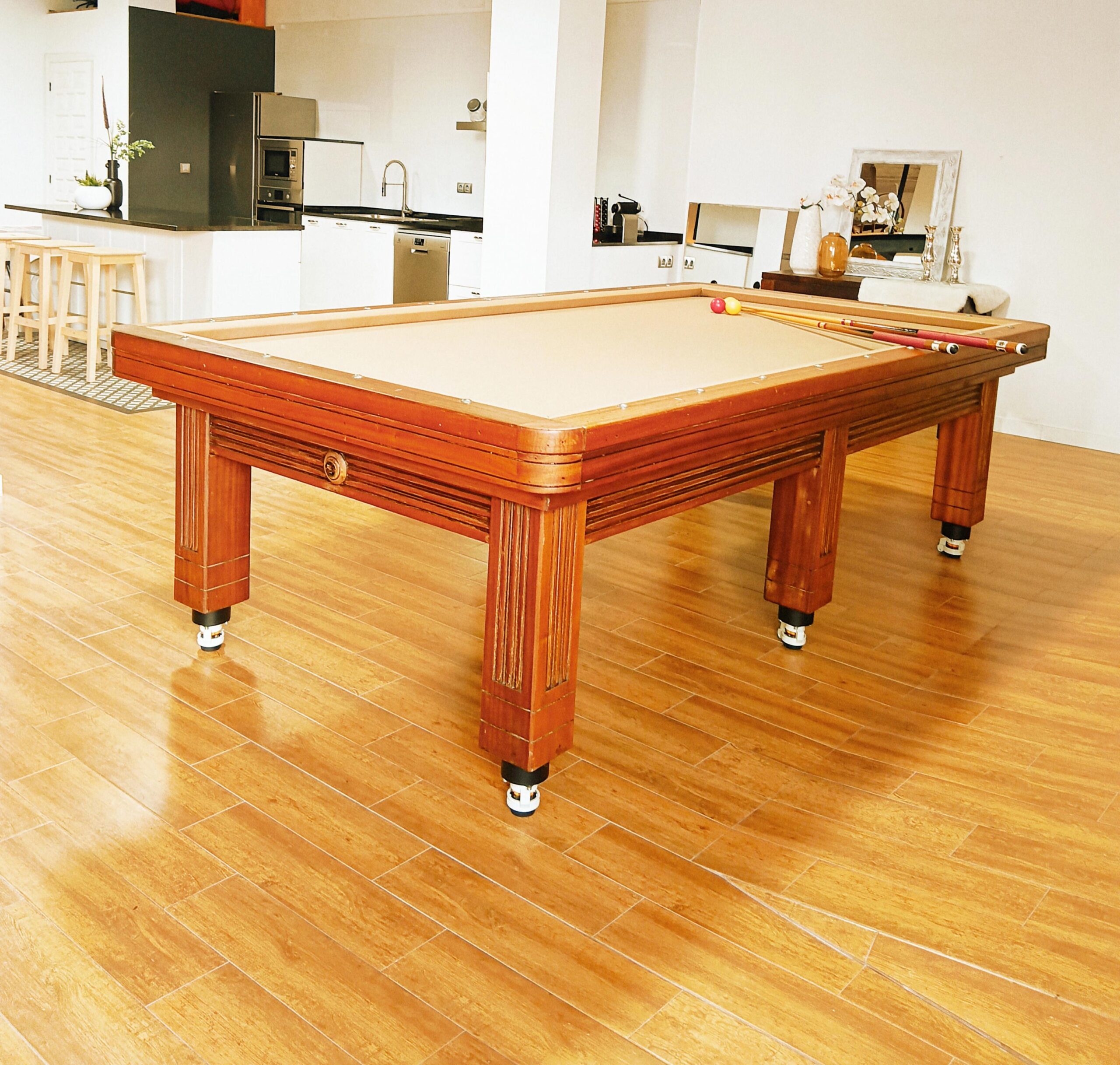 Planta diáfana de 110 metros cuadrados y entreplanta de 30 metros cuadrados, construida en madera, metal y cristal. Cocina moderna con isla, despensa y baño completo.