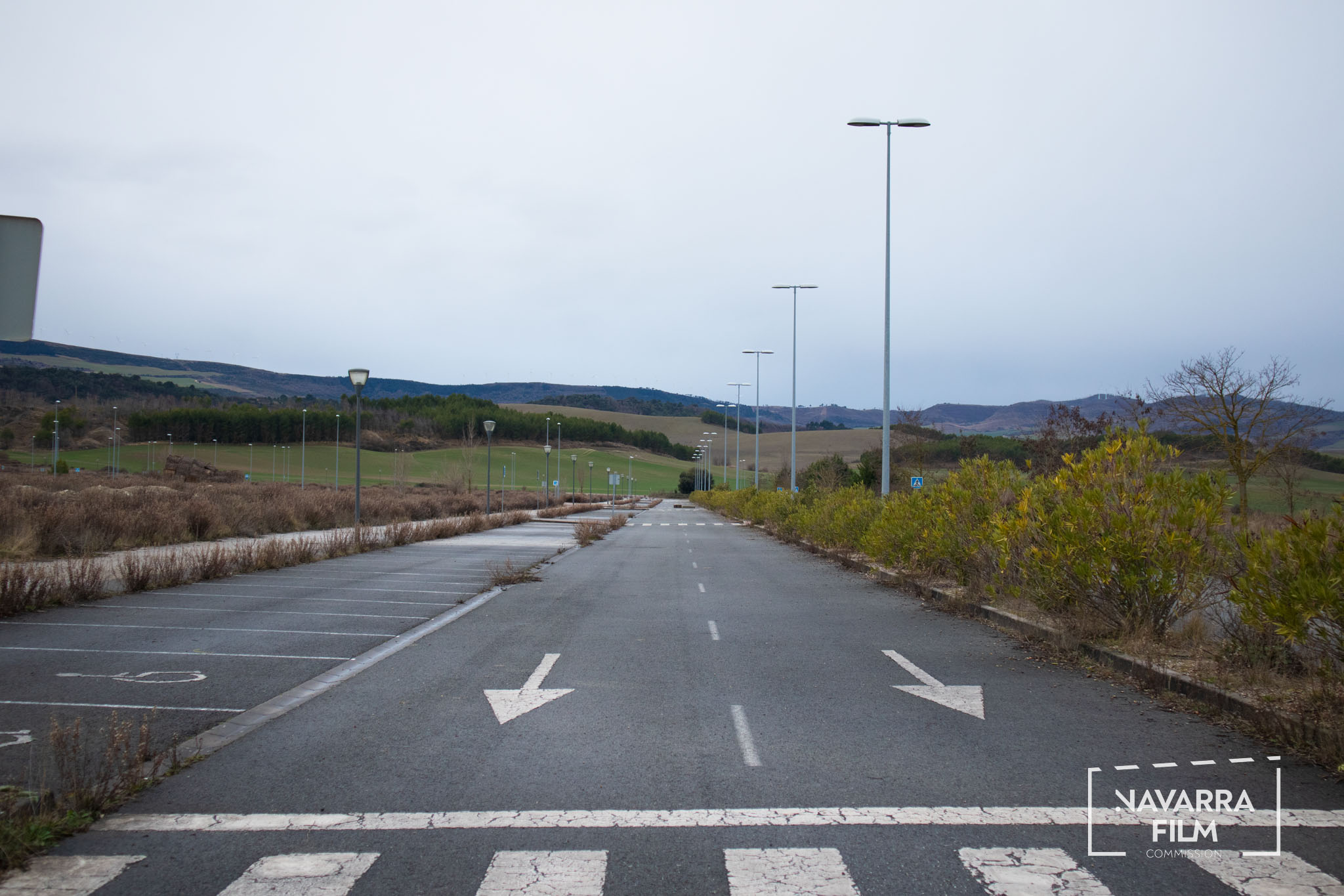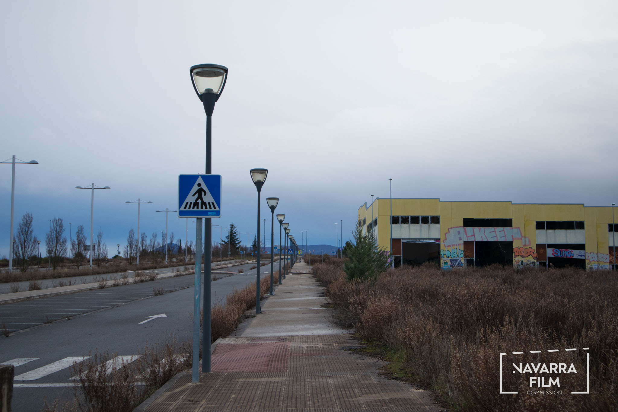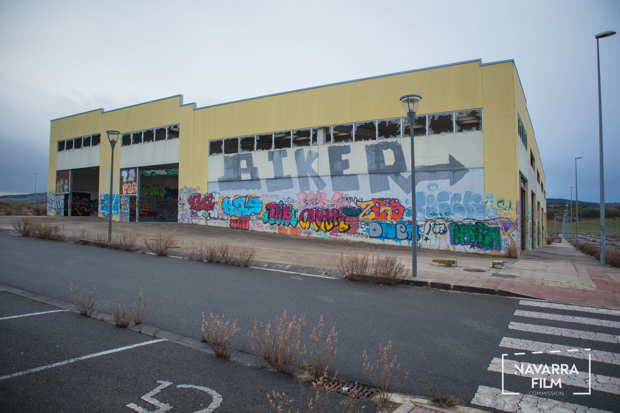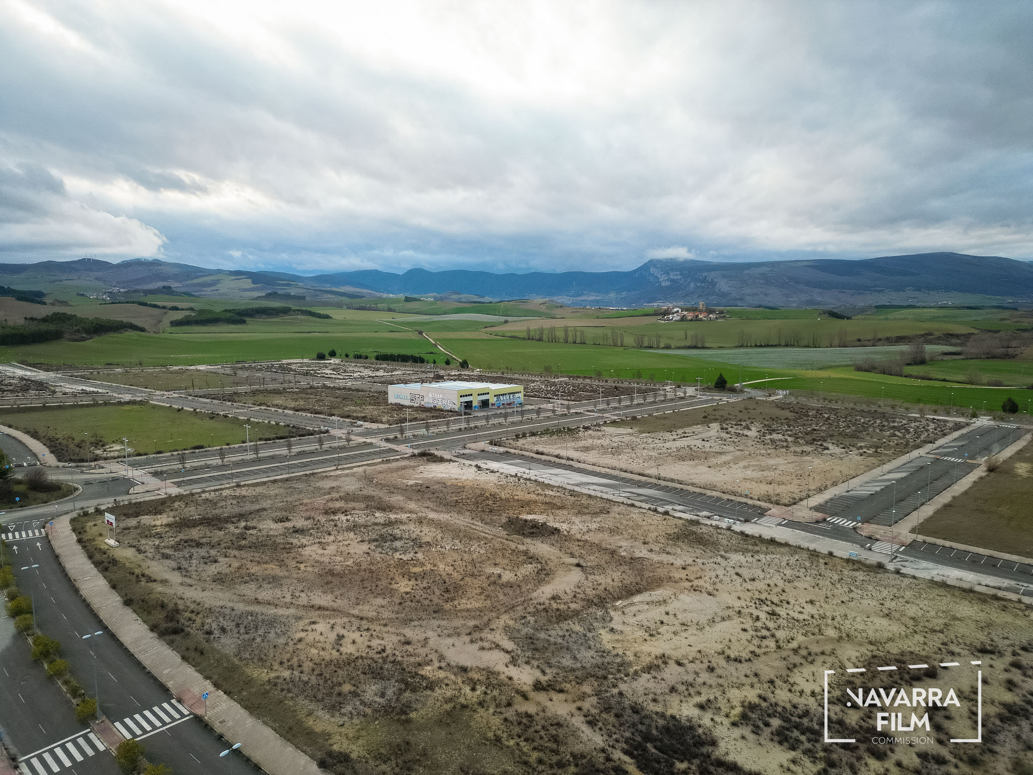 Polígono Gazólaz is an area that was planned for the development of an industrial estate that was never built. The site includes a long road with an urban layout intended to provide access to future plots, although the surrounding area was never fully developed. Vehicle access is currently prohibited, so the road remains without traffic. There is also an abandoned building in the area, in a semi-ruined condition and covered with graffiti.