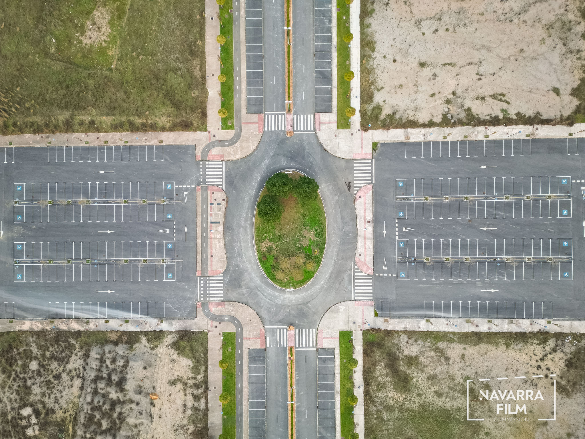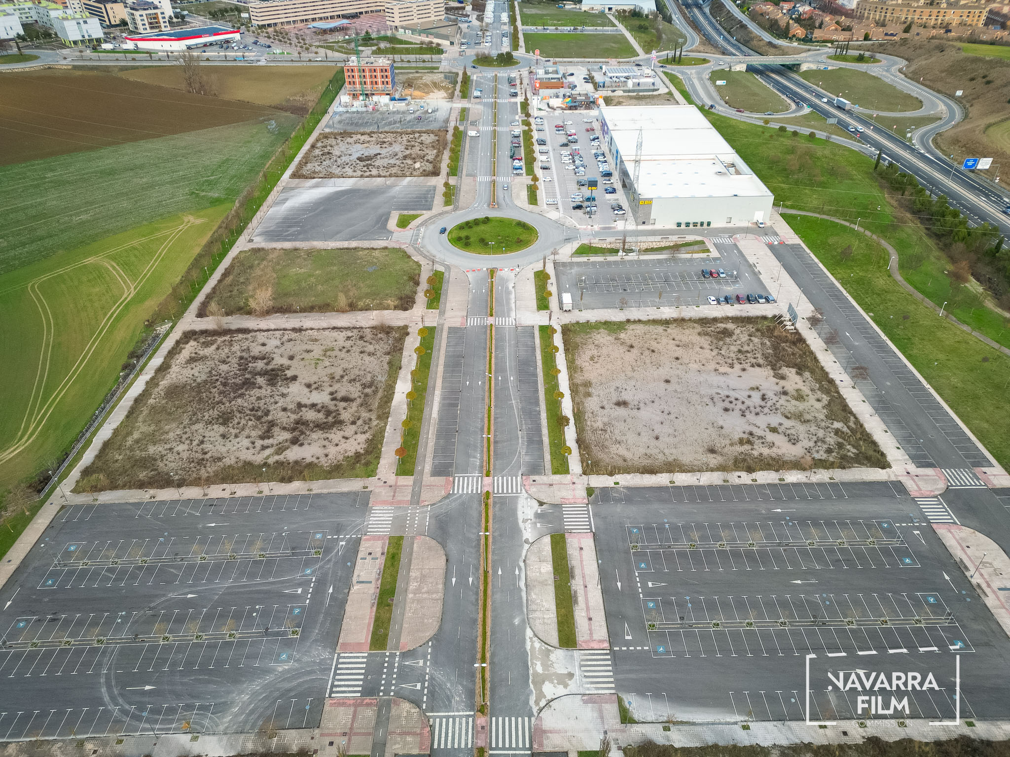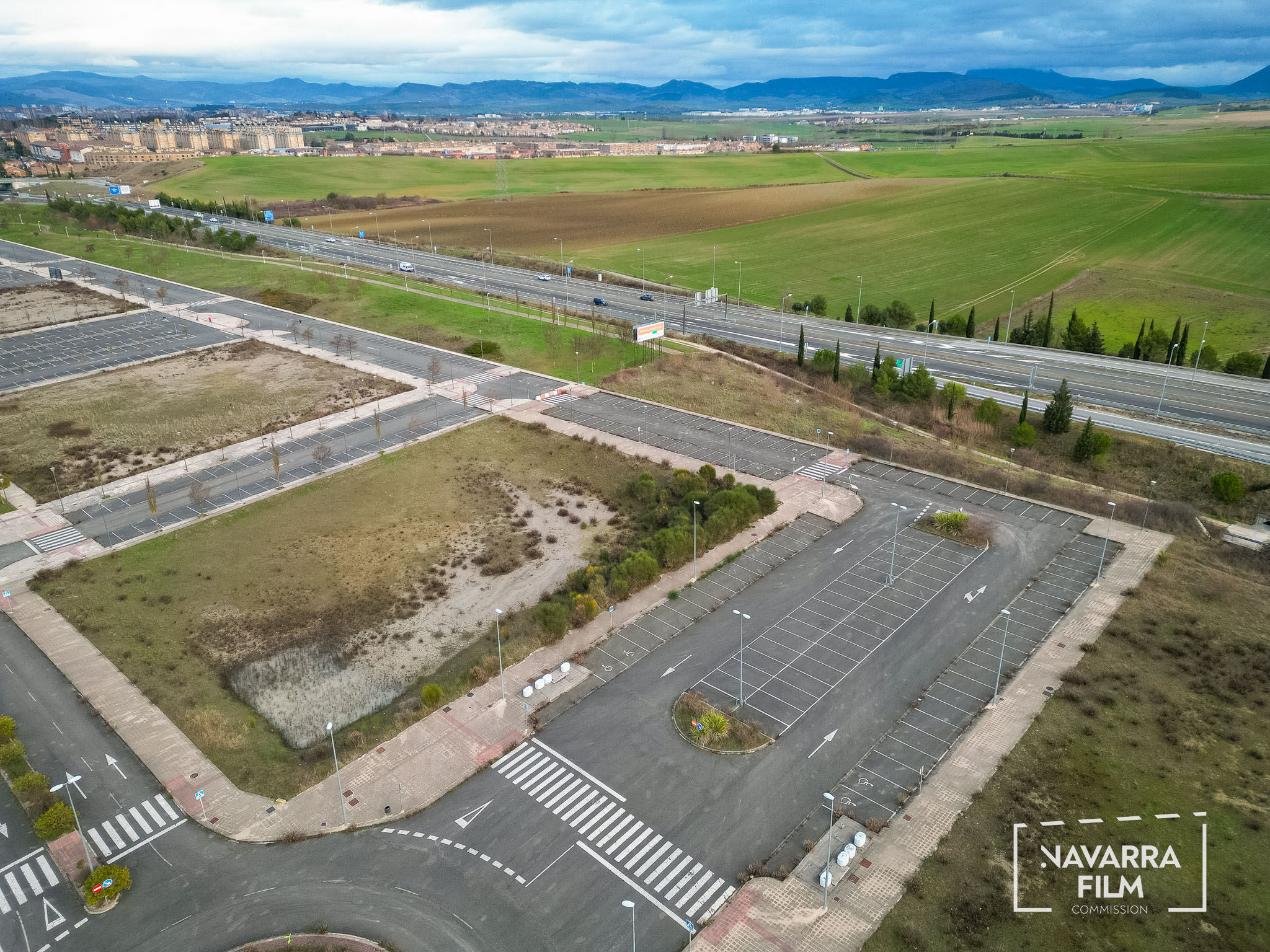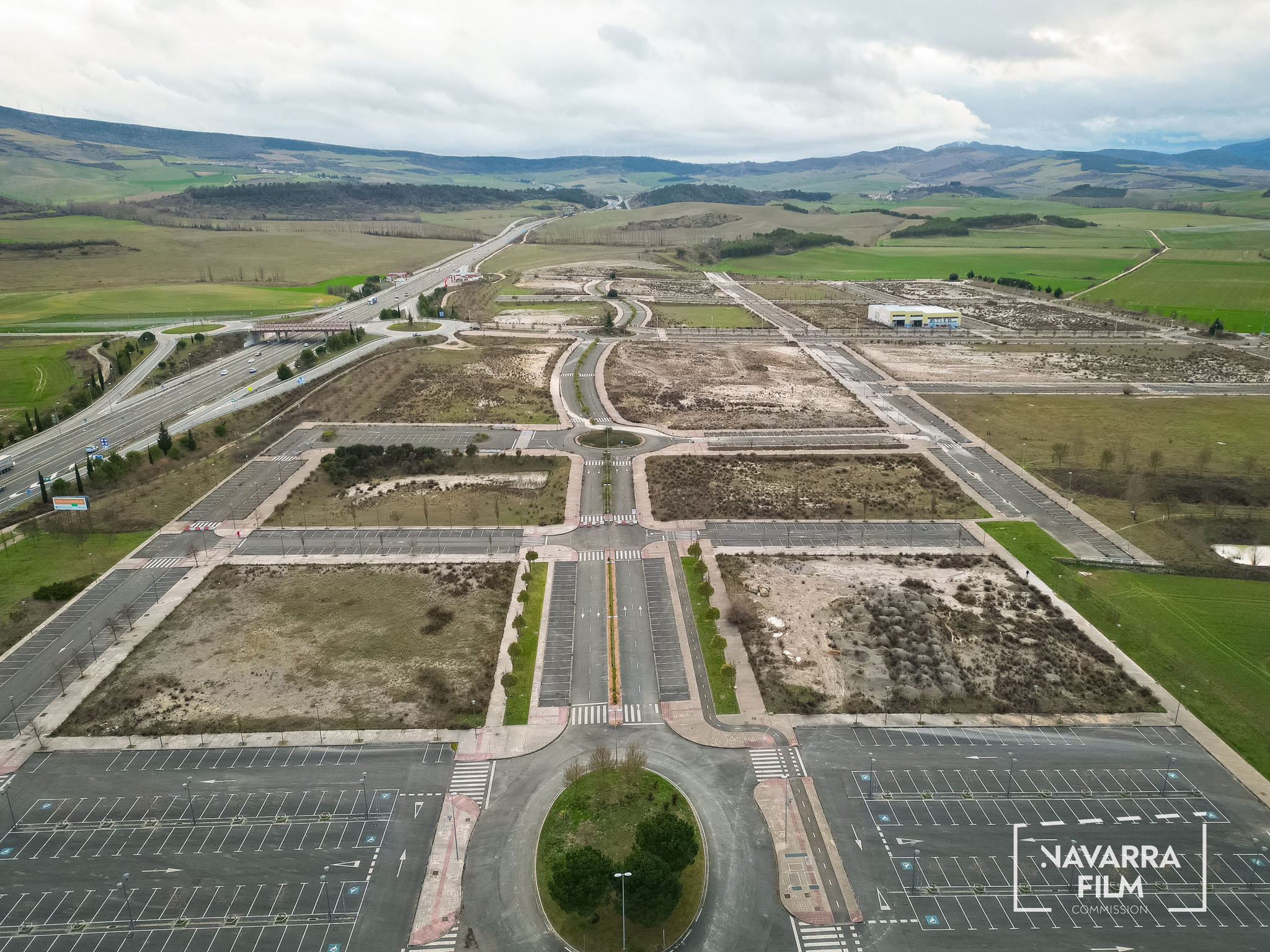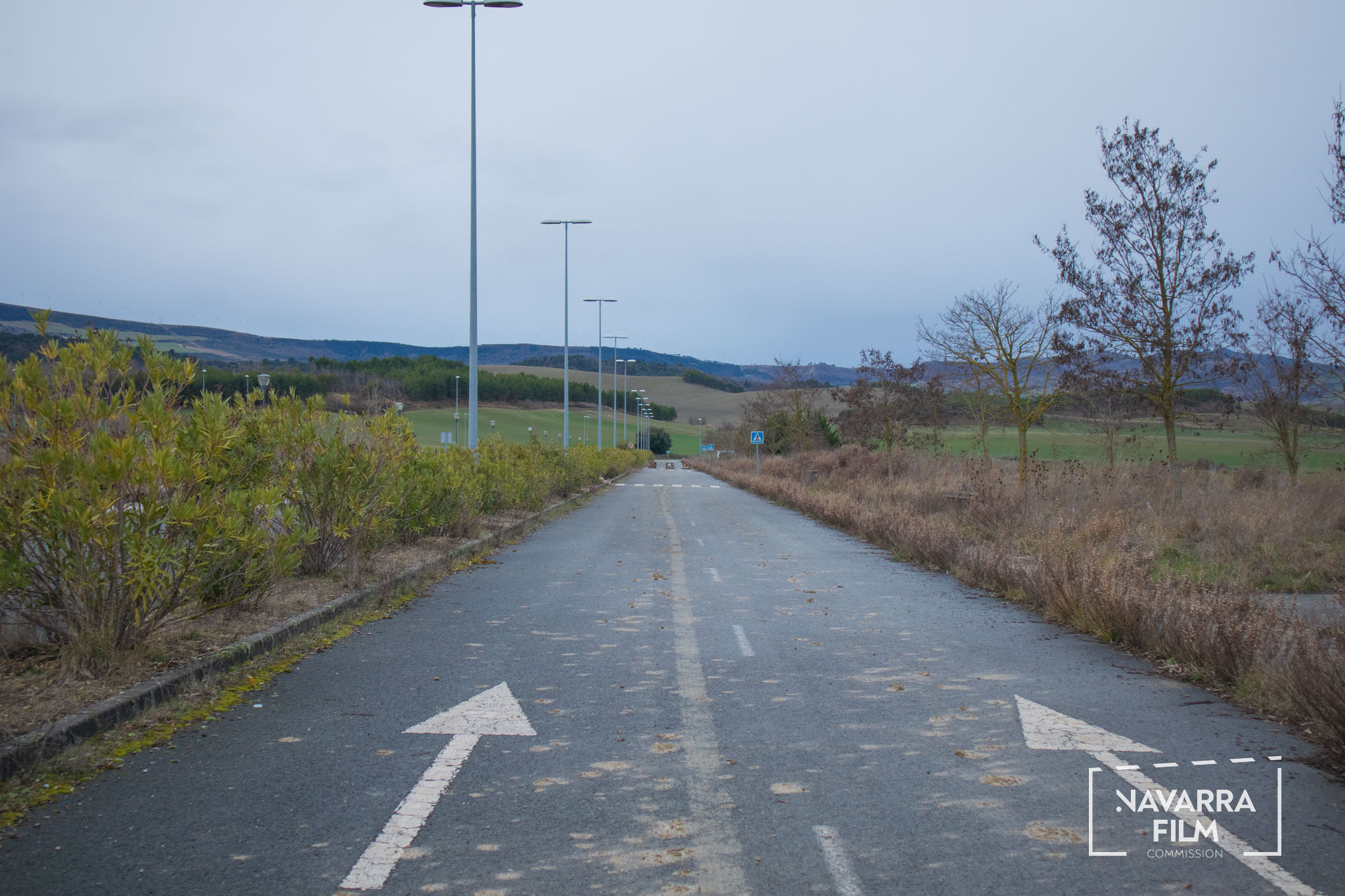 Polígono Gazólaz is an area that was planned for the development of an industrial estate that was never built. The site includes a long road with an urban layout intended to provide access to future plots, although the surrounding area was never fully developed. Vehicle access is currently prohibited, so the road remains without traffic. There is also an abandoned building in the area, in a semi-ruined condition and covered with graffiti.