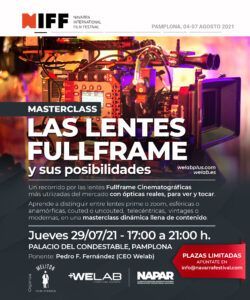 Ya están abiertas las inscripciones a la masterclass de Lentes Fullframe Cinematográficas que imparte Welab el jueves 29 de julio en el Palacio Condestable de Pamplona. Una masterclass dinámica y gratuita de cuatro horas en la que aprender a distinguir entre lentes prime o zoom, esféricas o anamórficas, couted, telecéntricas, vintages o modernas.