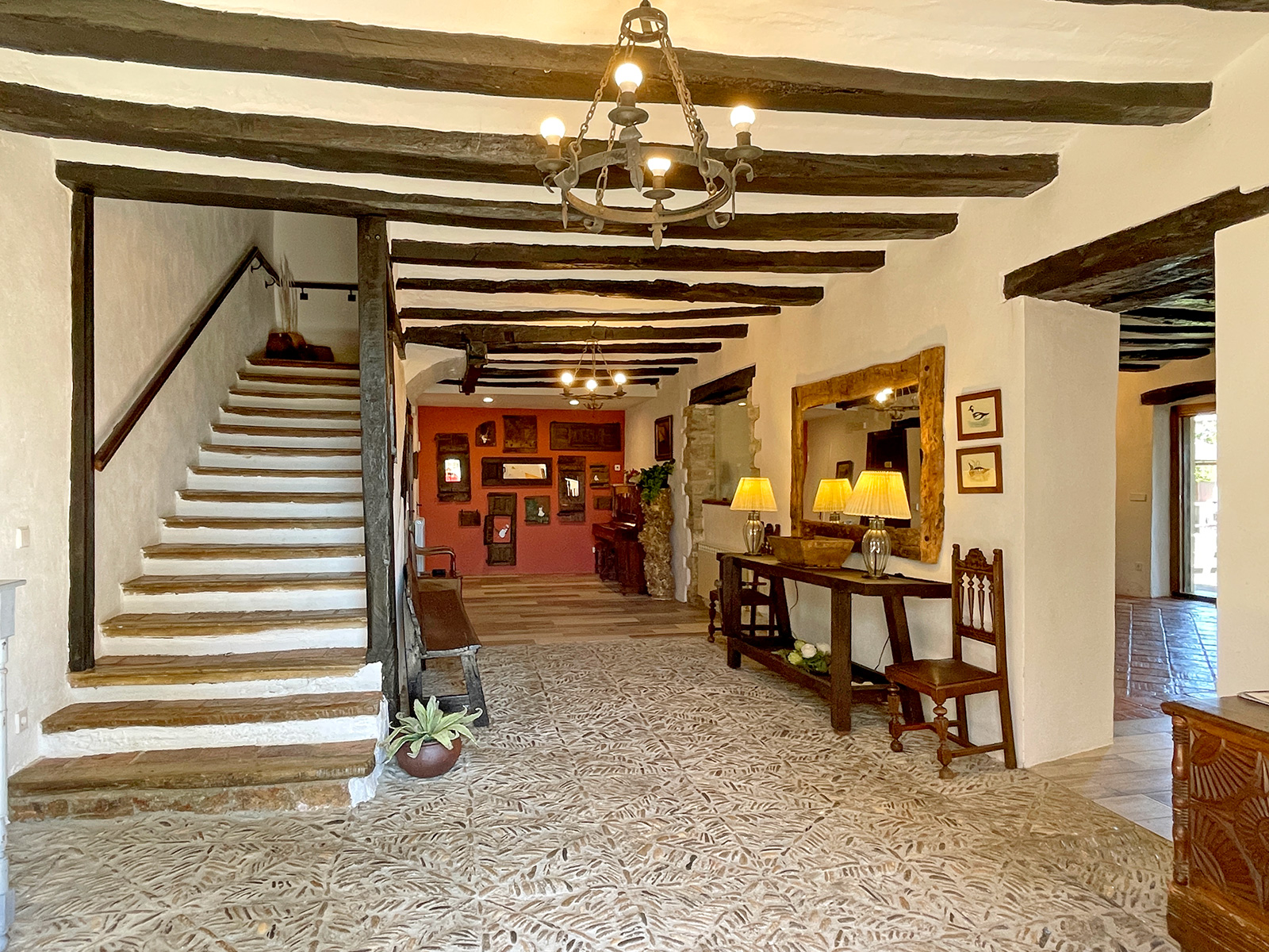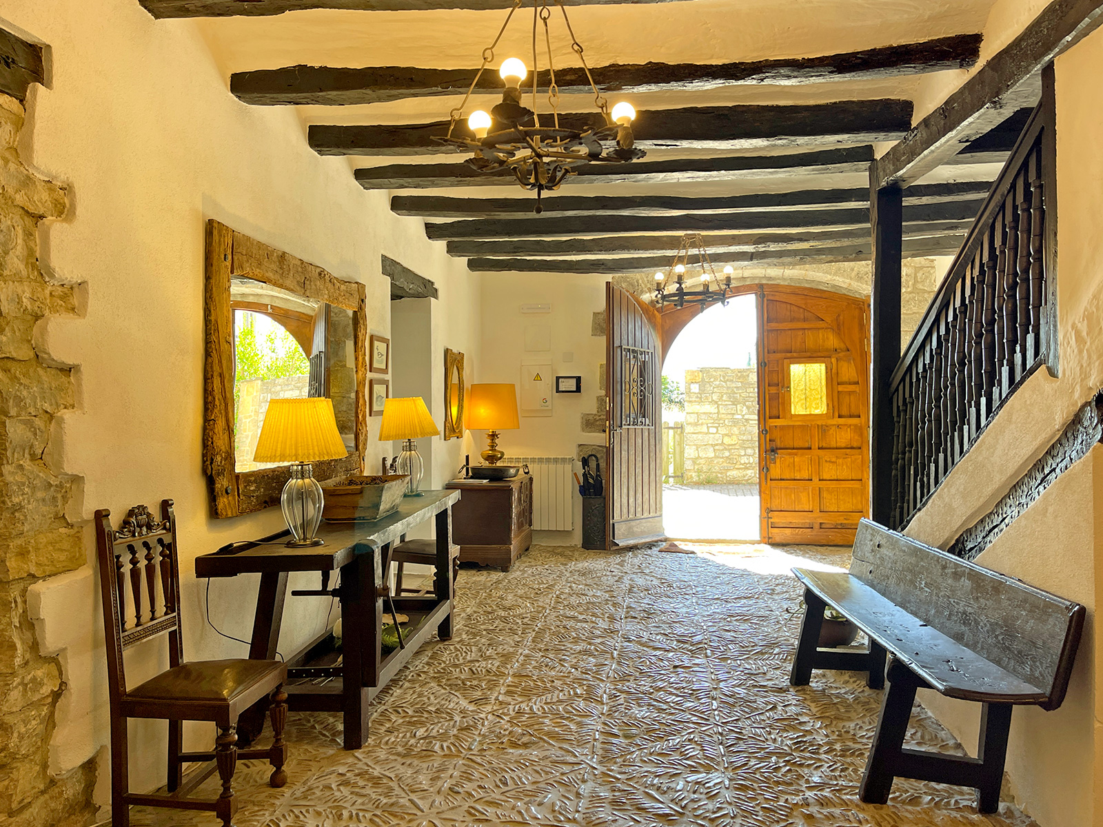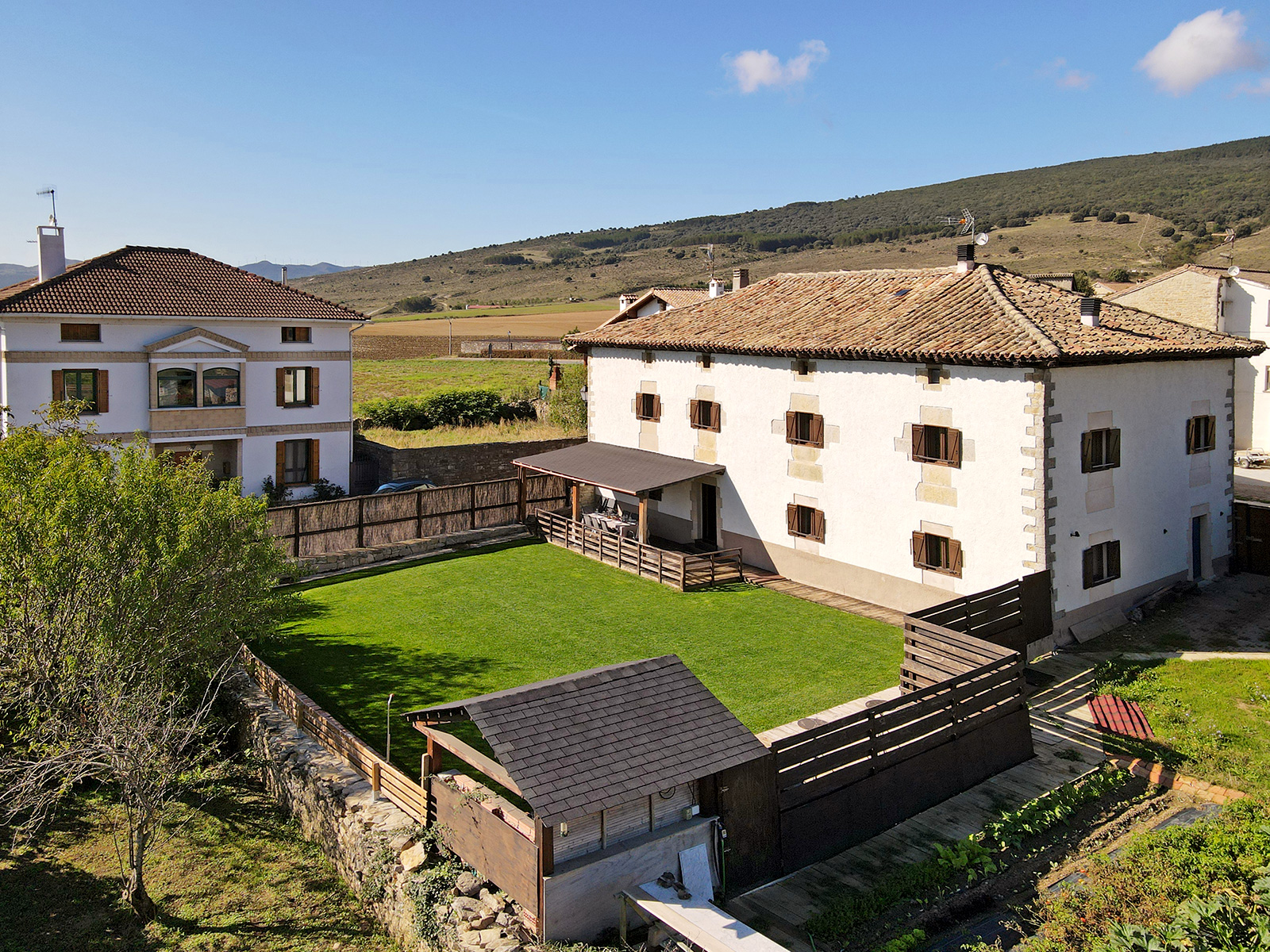 Casa rural de piedra en entorno rural con jardín.